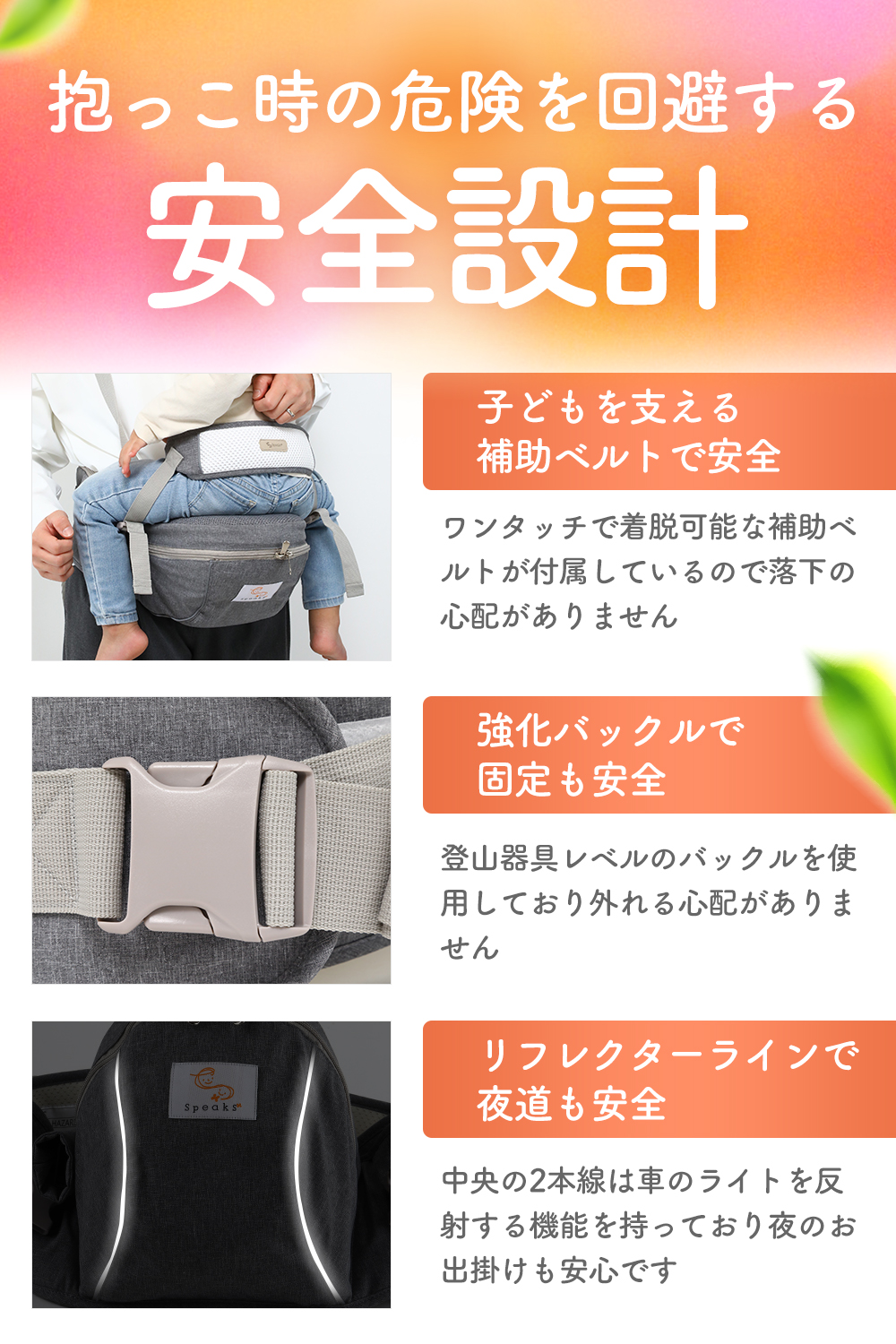 抱っこ時の危険を回避する安全設計♪